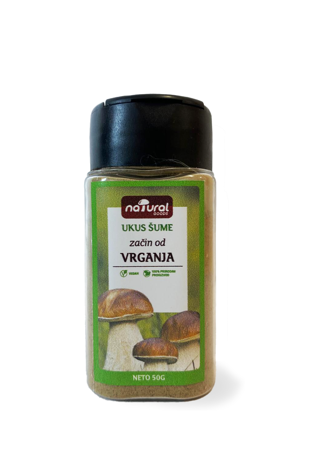 Začin od vrganja dobija se sušenjem i mlevenjem pažljivo odabranih plodova jedne od najcenjenijih šumskih pečuraka, poznatije i kao “kralja pečuraka”. Vrganj je poznat po svom bogatom, punom ukusu i snažnoj aromi koja jelima daje dubinu i izražen karakter.