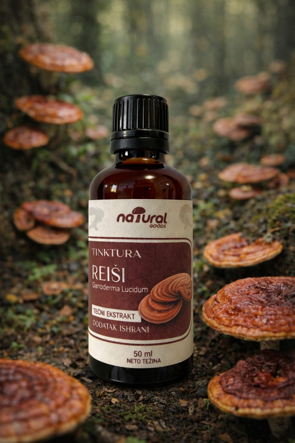 Natural Goods tinktura Reišija proizvodi se pažljivo kontrolisanim procesom ekstrakcije odabranih plodnih tela, čime se obezbeđuje koncentracija njenih najvrednijih bioaktivnih komponenti u praktičnom obliku kapi. Ovakav način primene omogućava jednostavno uključivanje prirodne podrške imunitetu, vitalnosti i svakodnevnom balansu organizma.