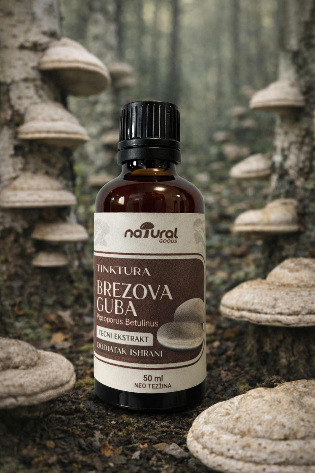 Natural Goods tinktura Brezove gube dobija se pažljivo kontrolisanim procesom ekstrakcije odabranih plodnih tela, čime se obezbeđuje stabilna koncentracija njenih najvrednijih bioaktivnih komponenti u praktičnom obliku kapi. Na taj način omogućava jednostavno uključivanje prirodne podrške imunitetu, respiratornom zdravlju, vitalnosti i svakodnevnom balansu organizma.