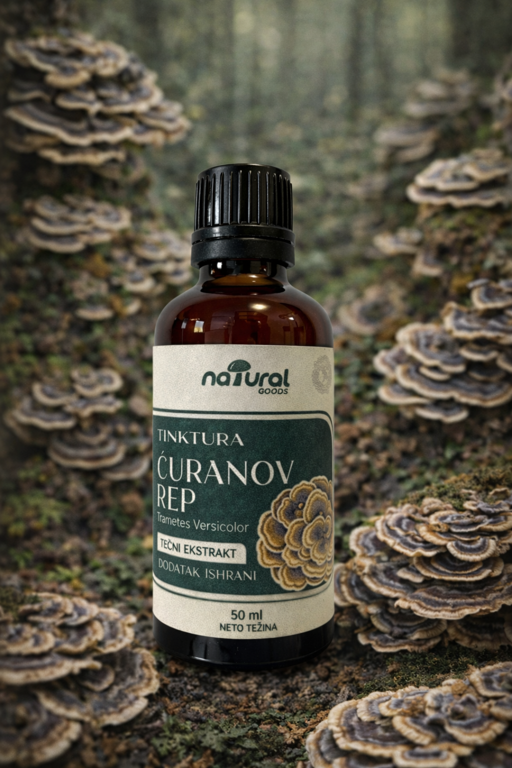 Natural Goods tinktura Ćuranovog repa proizvodi se pažljivo kontrolisanim procesom ekstrakcije odabranih plodnih tela, čime se obezbeđuje koncentracija njenih najvrednijih bioaktivnih komponenti u praktičnom obliku kapi. Na taj način omogućava jednostavno uključivanje prirodne podrške imunitetu, vitalnosti i opštem balansu organizma u svakodnevnu rutinu.