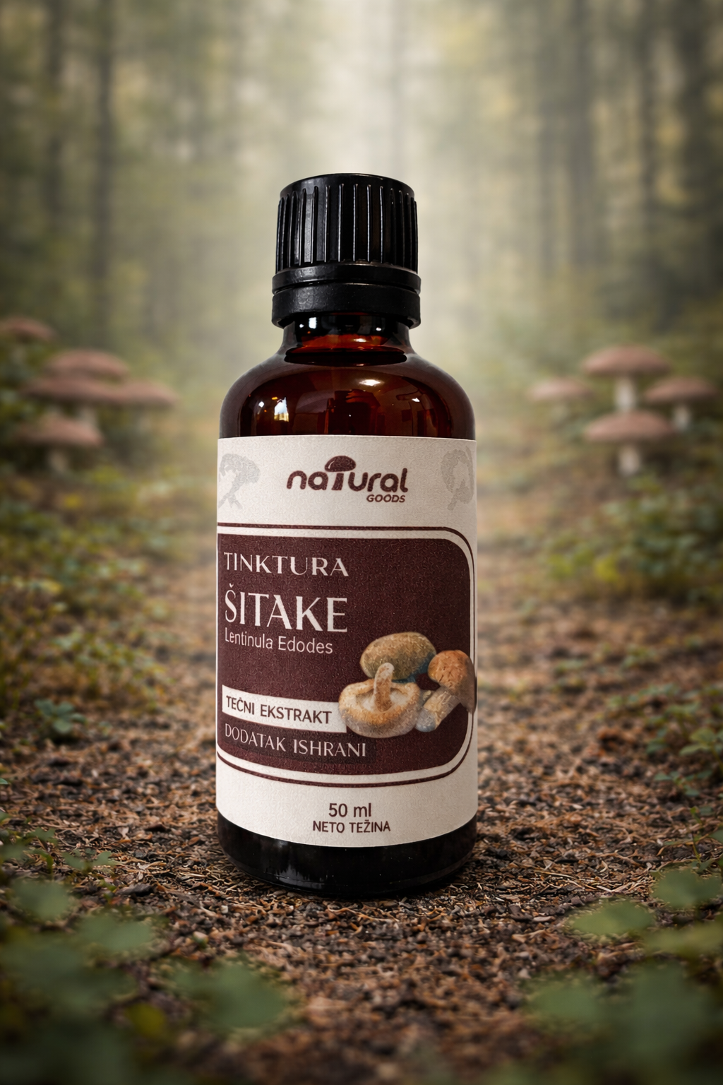 Natural Goods tinktura Šitake dobija se pažljivo kontrolisanim procesom ekstrakcije odabranih plodnih tela, čime se omogućava koncentracija njenih najvrednijih bioaktivnih komponenti u praktičnom obliku kapi. Na taj način predstavlja jednostavan način da svakodnevnoj rutini dodate prirodnu podršku imunitetu, vitalnosti i metaboličkom balansu.